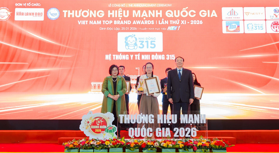 Nhi Đồng 315 vinh dự được trao tặng danh hiệu “Thương hiệu Xuất sắc Châu Á 2024” – ghi nhận những nỗ lực không ngừng nghỉ trong hành trình chăm sóc sức khỏe thế hệ tương lai. Bước sang năm 2025, hệ thống tiếp tục khẳng định vị thế tiên phong khi liên tiếp được vinh danh với hai giải thưởng uy tín: “Thương hiệu Xuất sắc Châu Á 2025” và TOP 03 “Doanh nghiệp Tiêu biểu ASEAN 2025 – ASEAN Typical Enterprises 2025” - một minh chứng rõ ràng cho vị thế dẫn đầu trong lĩnh vực chăm sóc sức khỏe trẻ em tại Việt Nam và sự tín nhiệm tuyệt đối từ cả cộng đồng dân sự lẫn hệ thống y tế chính thức.